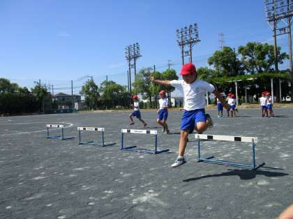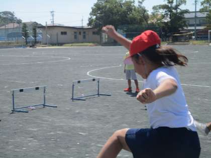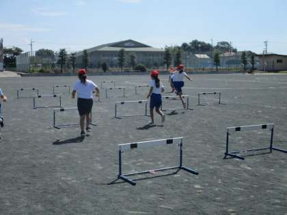 はじめに50m走の記録を測り、そこからどれだけ記録を近づけられるか、練習を重ねていきます。