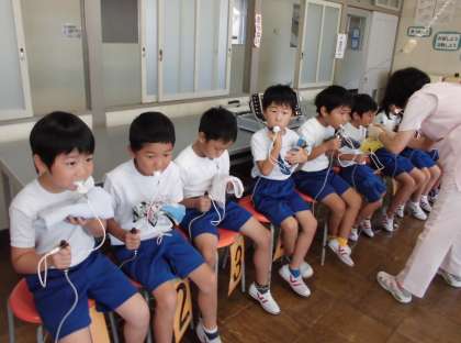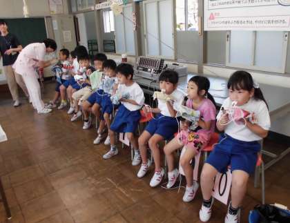 口に含んで上の歯3分、下の歯3分。よくがんばりましたね!