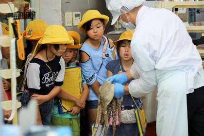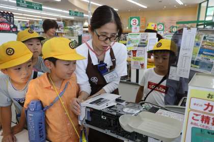スーパーマーケットの裏側を見学したり、レジ打ち体験をしたりしました。