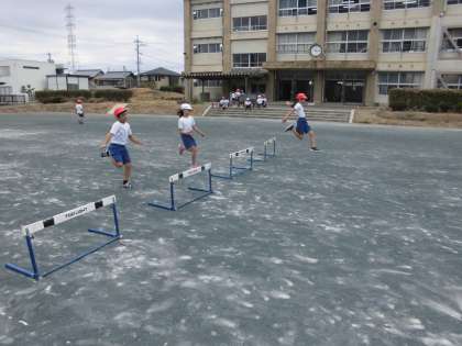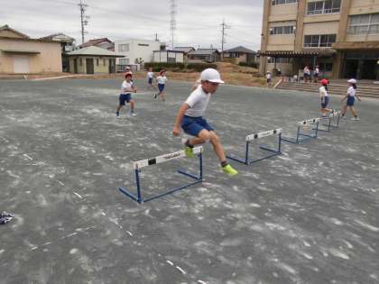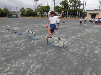 今日の体育もハードル走でした。みんなどんどん上達していきます。