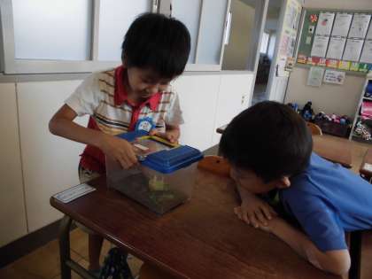 昆虫の世話や鉄棒の練習、道徳の授業。今日も楽しく、一生懸命取り組みました。