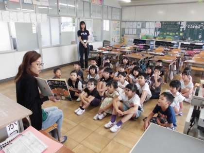 ひなたぼっこさんの読み聞かせ その2【9月20日(金)の1年生】 公開日 2019/09/20 更新日 2019/09/20 1年 ひなたぼっこさんの読み聞かせがありました。絵本と紙芝居を読んでいただきました。とても楽しい時間でした。