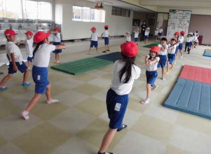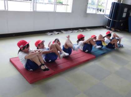 なかよし広場で体育を行いました。準備体操をしっかりして、マット運動に挑戦。ゆりかごの練習を、息をあわせて楽しそうにやっていました。
