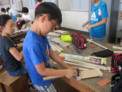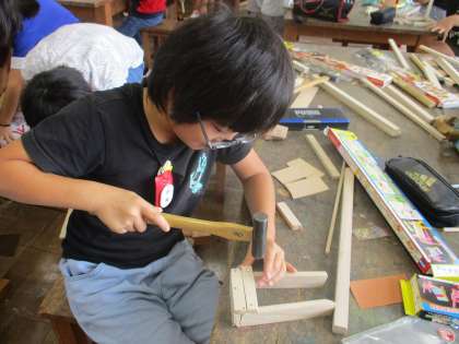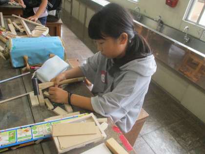 図工のギコギコトントンで、作品作りに励んでいます。