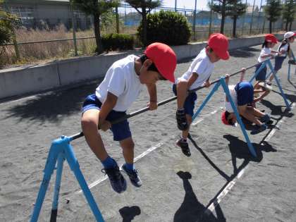 鉄棒の発表会に向けて【9月25日(火)の1年生】 公開日 2019/09/25 更新日 2019/09/25 1年 発表会に向け、鉄棒の練習を真剣に行いました。ペアになり、友だちのがんばりを互いにに見合いました。できる技が増え、「先生、見て」と、喜んで見せてくれました。国語では、「かずとかんじ」を読みました。数に合わせて手をたたき、楽しく数の読み方を覚えました。