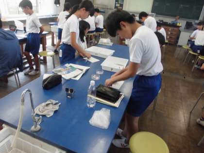 本日の理科の授業では、自分で持ってきた身近な水溶液の性質を調べました!
