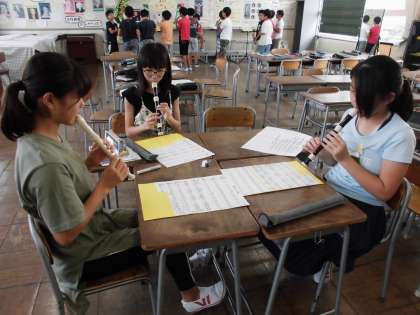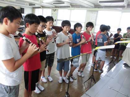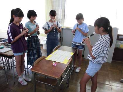「カノン」のグループ練習をしています。音色が響き合っていました。