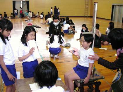 ペア学年身体計測 公開日 2010/04/16 更新日 2010/04/16 校長室より 3年生と5年生のペアで身体計測をしています。屋内運動場で身長・座高・体重等の計測を協力して行いました。いろいろな活動でペア活動を取り入れています。