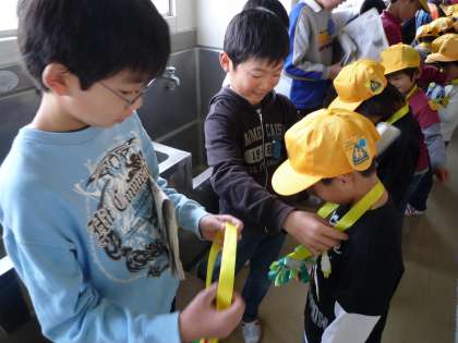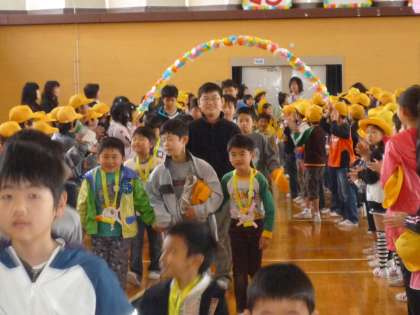 一年生を迎える会(6年生) 公開日 2010/04/19 更新日 2010/04/19 6年 6年生になって初めてのふれあい活動、「1年生を迎える会」がありました。手作りペンダントをプレゼントして、手をつないで一緒に会場へ入場しました。その後、「浅井中小クイズ」や「たたんで・乗って・じゃんけんポンゲーム」で楽しみました。みんな笑顔いっぱいでした。今度はふれあい遠足があります。楽しみだね。