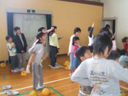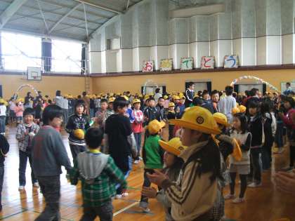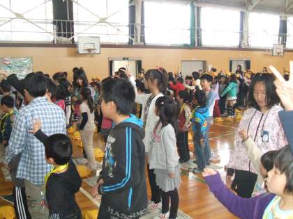 6年生のお兄さんお姉さんから、メッセージつきの首飾りをかけてもらった後、たくさんの拍手の中入場しました。ゲームなどをして、楽しい1時間を過ごしました。最後に、「これからも、仲よくしてください。よろしくお願いします。」と立派にあいさつができました。