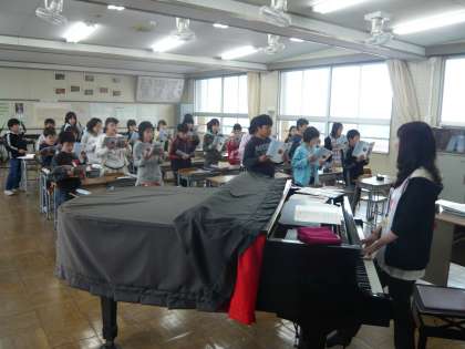 いよいよ音楽の授業が始まりました!!音楽室で学年担任以外の先生(西脇先生)に教えていただくので、子ども達も新鮮な気持ちでうれしそうです!