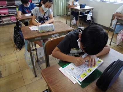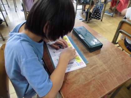 国語の学習で新出漢字を習いました。読み→空書き→なぞり書きの順序も覚え一生懸命に取り組むことができました。