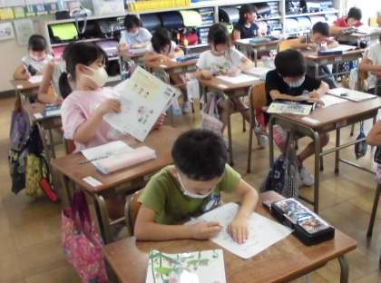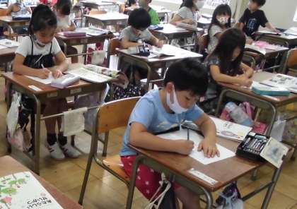 これまでの写真や教科書を見て、大切に育ててきたことや、花が咲いた時の嬉しい気持ちを思い出し、一生懸命に書くことができました。