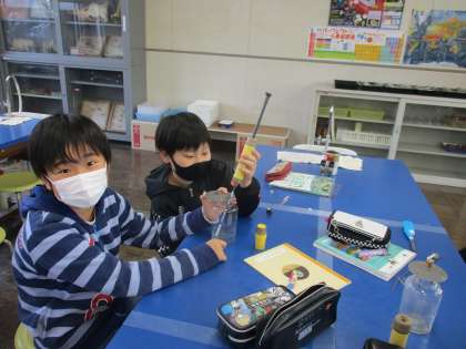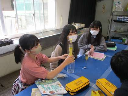 理科の実験をがんばっています。