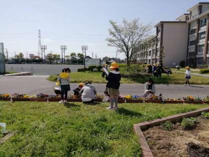 活動中、2年生が花壇の近くで、たくさんの春を見つけていました。嬉しそうな顔や真剣な姿が見られて、こちらも嬉しくなりました。