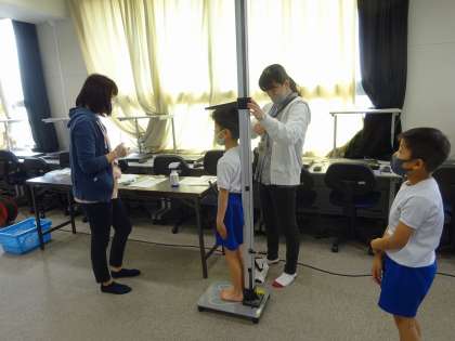 2年生初の身体測定。ソーシャルディスタンスを保っての身体測定です。
