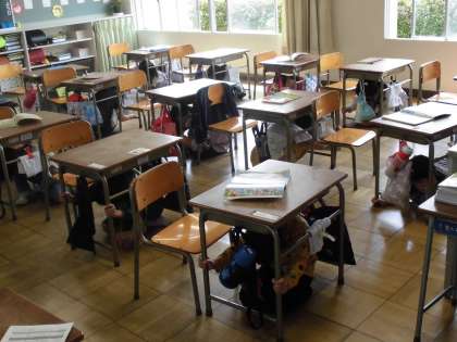 避難訓練【4月22日(木)の浅井中小】 公開日 2021/04/22 更新日 2021/04/22 学校行事 今日は今年度最初の避難訓練を行いました。予定では全校一斉に運動場に避難する予定でしたが、コロナウイルスの感染拡大を受けて一斉に避難は行いませんでした。 放送に合わせて机の下に身をかくしたり、各クラスごとに避難経路の確認を行いました。 地震などの災害はいつ起こるか分かりません。学校ではこういった避難訓練を繰り返し、いざというときに身を守る安全な行動をとれるようにしていきます。