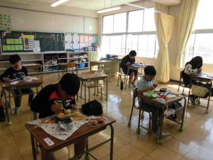 お弁当の時間をとても楽しみにしていました。とてもおいしそうに食べていました。朝からお弁当のご準備ありがとうございました。