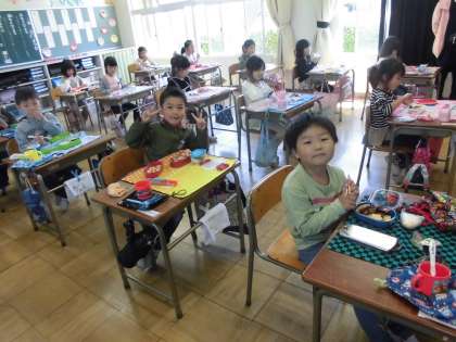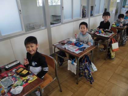 朝から楽しみにしていたお弁当、みんなにっこり笑顔でした。