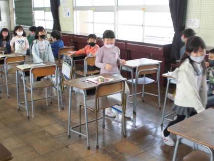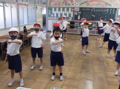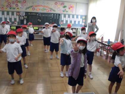 活動の様子【4月30日(金)の1年生】 公開日 2021/05/06 更新日 2021/05/06 1年 体育発表会に向けての練習が始まりました。教室で動画を見ながら、ダンスの振り付けを覚えました。 音楽では、「ゴー アンド ストップ」の曲に合わせて歩きました。