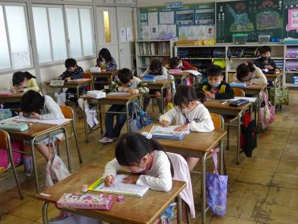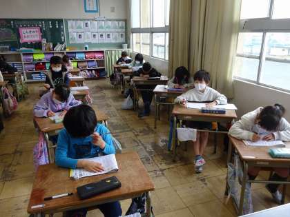 シーンとした中、漢字スキルに取り組んでいます。連休明けも、順調です!