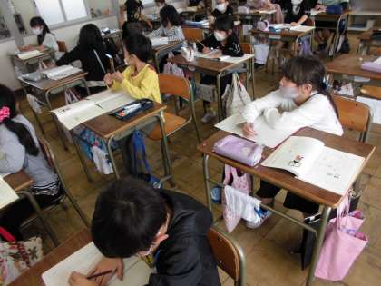 同じ漢字の音読みと訓読みを使い文章を作りました。 漢字辞典を用いて、いろいろな文ができました。