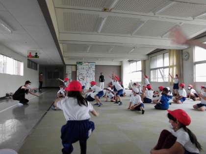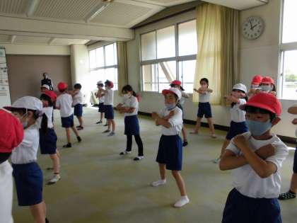 ダンスの練習【5月11日(火)2年生】 公開日 2021/05/11 更新日 2021/05/11 2年 今日もはりきってダンスの練習に取り組みました。教頭先生に、新たに創作作ダンスの動きを教えてもらい、思い思いに動作を考えていました。
