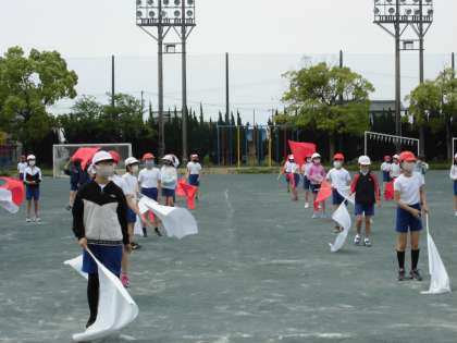 練習の後半に、5年生と6年生、互いの演技を見合いました。