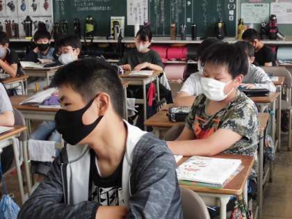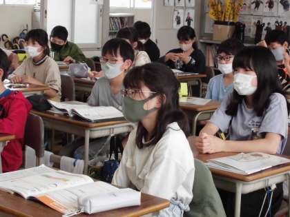 家庭科の授業を受けています。