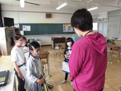 学校探検 たんぽぽ学級の先生とあいさつ その2【5月13日(木)の1年生】 公開日 2021/05/13 更新日 2021/05/13 1年 たんぽぽ1組、2組、3組の先生の名前を教えてもらい、教室にあるものを見たり、2回から運動場をながめたりしました。