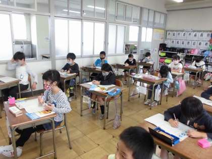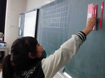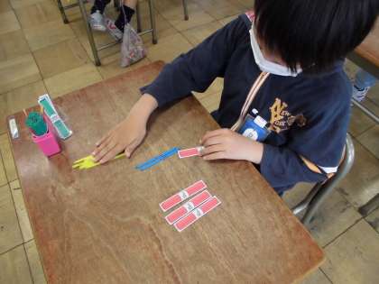 算数の授業の様子です。数え棒を動かしながら、計算の仕方を考えました。たくさんの計算練習にも取り組みました。
