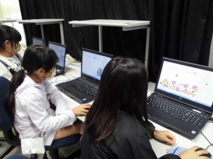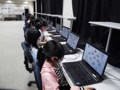 今日は、パソコン室へ行きました。マウスの動かし方の練習をした後に、スタンプなどを使って、自由にお絵かきをしました。