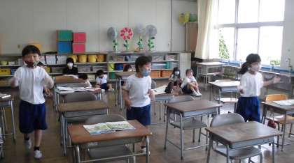 貨物列車の曲に合わせて手や足を動かして歩きました。