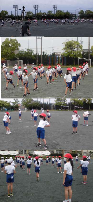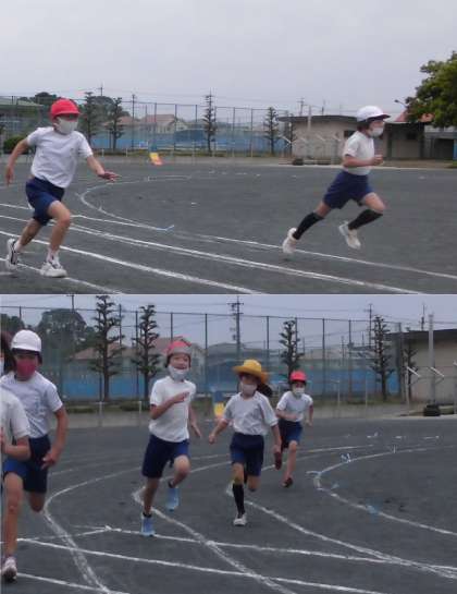体育発表会の練習をしています。本番同様の練習とい うことで、真剣そのものです。