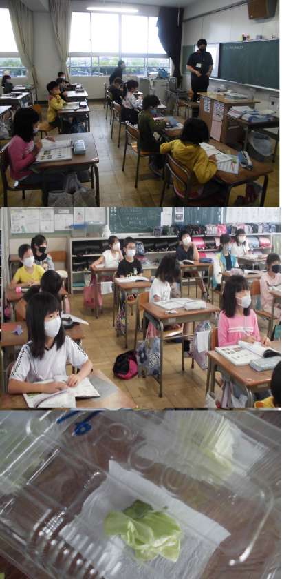 みんなが集めたモンシロチョウの卵が、飼育ケースに