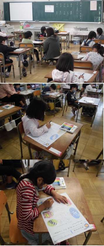 あ・い・う・え・おのつくことばを考えて書いていま す。全部できたかな?