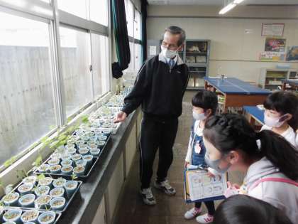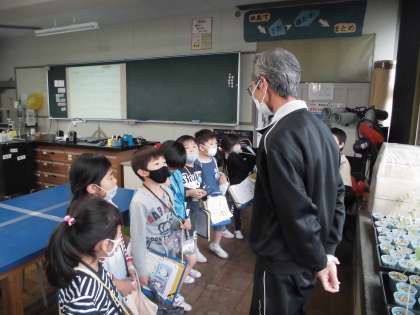 理科室へ行き、理科の先生とあいさつをしました。
