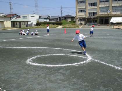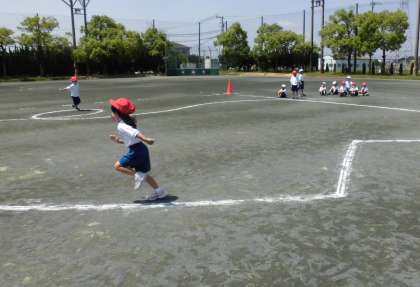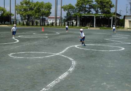 コースに沿って速く走るためには、どんなことに気をつけたらよいかを考えて走りました。