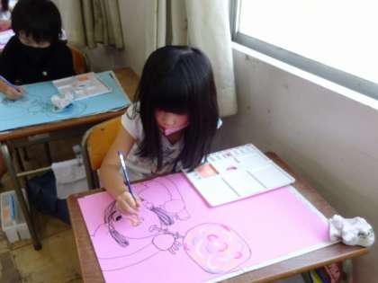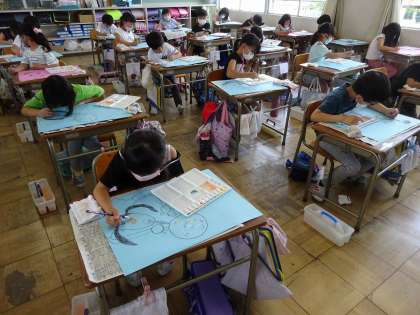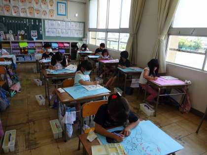 しゃぼん玉あそびの絵(図工)【6月8日【火)の2年生】