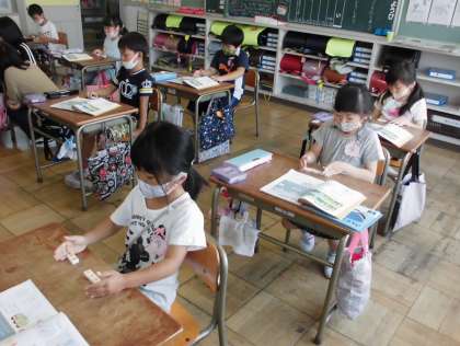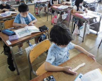 活動の様子【6月9日(水)の1年生】 公開日 2021/06/09 更新日 2021/06/09 1年 算数ではたし算の学習に入っています。数図ブロックを何度も動かして、「合わせていくつ」「増えるといくつ」になるかを考えています。 昼放課には、ウサギ小屋へ行き、生まれた赤ちゃんの様子をみながら、きなこに餌を上げました。