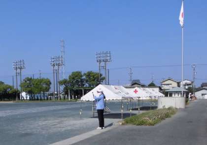 今日も、とってもよい天気となっています。朝から気温が高く感じられます。養護教諭の先生が毎日、WBGT(暑さ指数) を測定しています。8時半、屋外のWBGT(暑さ指数)は24.1で「注意」レベルとなっています。こまめに、水分補給をよびかけています。今後も、多めの水分準備をお願いします。