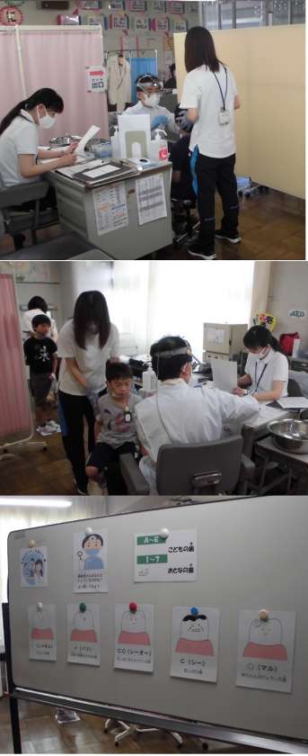 1日かけて、全校児童の歯科検診を行っていただいています。今後、お子さんを通して、本日の結果をお知らせします。歯科医の先生に診察をしていただいたほうがよいとの知らせを受けた子は、かかりつけの歯科医さんへの受診をお願いします。