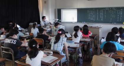 短歌・俳句に親しもうのスタート、1時間目の授業でした。手始めに、松尾芭蕉について勉強しました。芭蕉は、江戸時代のはじめ、今の俳句のもととなる、俳諧(はいかい)をよむことを仕事にしていた人で、「おくのほそ道」の作者としても有名です。五・七・五、わずか十七音の中に、しみじみとした趣やかれた味わいを表現することで、それまで、言葉遊びが中心だった俳諧を、芸術性あふれる文学に高めた人であることを知りました。これから、短歌・俳句を味わっていきます。