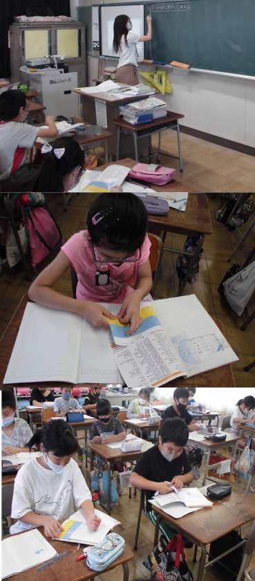 「平行四辺形をしきつめてもようをつくってみよう」をめあてにもようをつくってみました。しきつめもようの中には、いろいろな大きさの、平行四辺形らしき四角形があることがわかります。この平行四辺形らしき四角形は、本当に平行四辺形なのでしょうか?平行四辺形だと説明してみましょう。