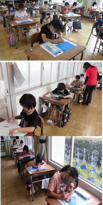 国語のテストをしています。できてしまった子は、もう一度見直しをするようにしましょうと、みんなによびかけています。