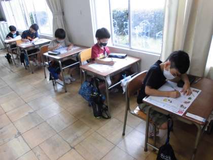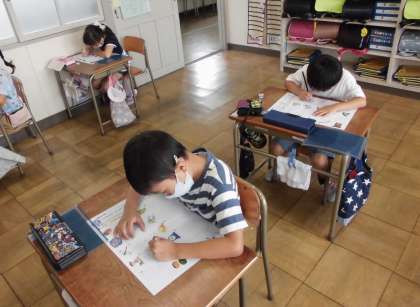 ひらがな検定 【6月22日(火)の1年生】 公開日 2021/06/22 更新日 2021/06/22 1年 ひらがな検定がありました。ひらがながきちんと身についているか、確かめることができました。集中した後は、体育で思いっきり体を動かしました。