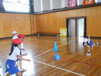 ボールあそび 【6月23日(水)の1年生】 公開日 2021/06/23 更新日 2021/06/23 1年 ころがしドッジをやっています。 がいやのこは、よーくねらって・・・。 ないやのこは、ころがるほうをよそくして・・・。 どちらもがんばれー!!