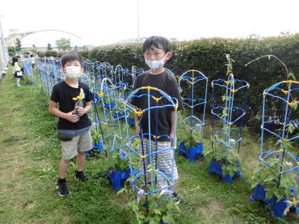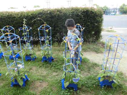 あさがおの花が咲いたよ 【6月23日(水)の1年生】 公開日 2021/06/23 更新日 2021/06/23 1年 今週に入ってから、あさがおの花が咲き始めました。まだ全員の花は咲いていませんが、小さなつぼみができ始め、いつ咲くのかを楽しみにしています。