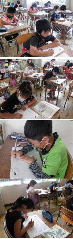 スイミー【6月24日(木) 2年生】 公開日 2021/06/24 更新日 2021/06/24 2年 めあては、「スイミーに手紙を書こう」です。大きな魚をおい出したスミーや小さな魚たちのすごさがわかり、紙に書ききれないくらいいっぱい、手紙を書く子もいました。
