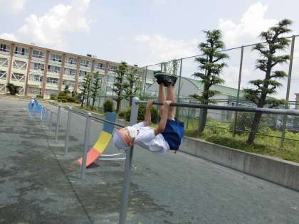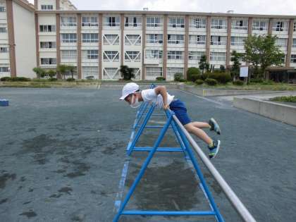 鉄棒の発表会をしたよ【6月24日(木)の2年生】 公開日 2021/06/24 更新日 2021/06/24 2年 今日は、今まで練習してきた技の中から、自分の得意な技を3つ以上組み合わせて、みんなの前で発表しました。自分の身長よりも高い鉄棒で連続逆上がりをする子がいたり、できなかった逆上がりができるようななってみんなに拍手をもらう子がいたり、友達の「いいね!」がたくさん見つけられた発表会になりました。